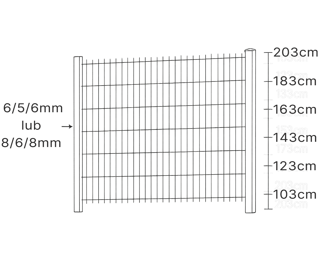 Wysokość: 103, 123, 143, 163, 183 oraz 203cm