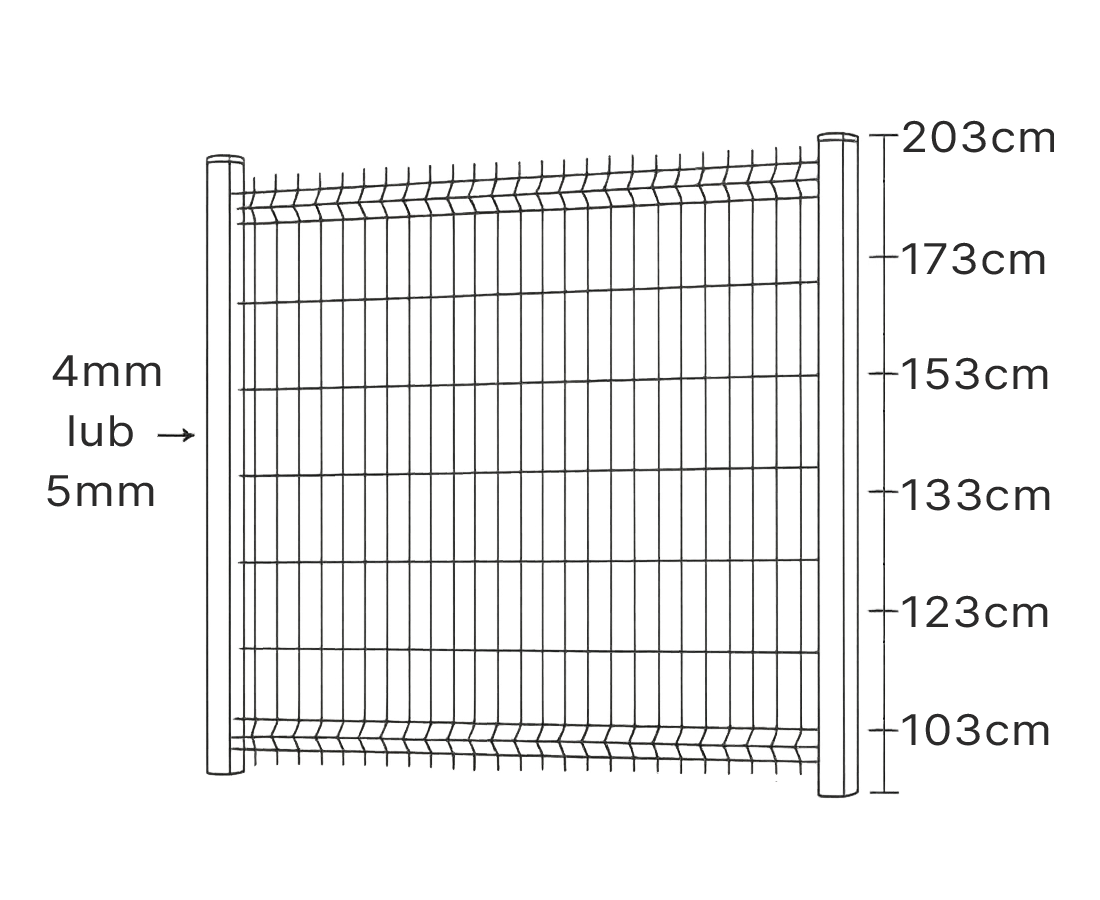 panele ogrodzeniowe wykonane są z wysokiej jakości stali, zabezpieczonej antykorozyjnie poprzez cynkowanie i malowanie proszkowe, co zapewnia odporność na warunki atmosferyczne i długą żywotność.